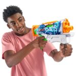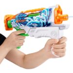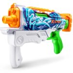 توی حیاط خونهتون یا توی پارک باهم قرار بذارید و با اولین شلیک جنگ آببازی رو شروع کنید. تفنگ “Fast Fill” از برند Zuru، با داشتن مخزن 500 میلیلیتری و بُرد 10 متری برای شلیک آب، تجربهی متفاوت و هیجانانگیزی از بازی با آب رو به شما میدهد. یکی از قابلیتهای جذاب این تفنگ اینه که شما میتونید با باز کردن در مخزن بالایی و قرار دادن تفنگ در آب فقط در 1 ثانیه، تفنگ خودتون رو دوباره پر کنید و سریعتر از رقیباتون به جنگ آببازی برگردید.ویژگی تفنگ آبپاش ایکس شات X-Shot سری Skins