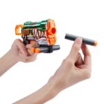 تفنگ منس از برند Zuru، یک تیر رو در اسلحه و دو تیر رو در خشاب خودش جای میدهد که به شما این امکان رو داده تا تفنگتون رو قبل از حریفان آماده کنید. برای شلیک کافیه که تیر رو در اسلحه قرار داده، گلنگدن رو به عقب بکشید و ماشه رو فشار دهید تا یک تیر به سمت هدف پرتاب شود. این تفنگ با طرح گرافیتی جدید و جذابی که دارد رقابت تو صحنهی نبرد رو براتون هیجانانگیزتر میکند.ویژگی تفنگ ایکس شات X-Shot سری Skins مدل Menace