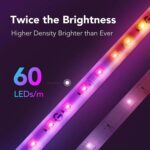 ریسه هوشمند 2 متری Govee LED Strip Light M1 – 2M در هر متر دارای 60 LED است و تراکم بیشتری نسبت به بسیاری از ریسههای دیگر دارد. تراکم بیشتر لامپهای LED کمک میکند حین طراحی نورپردازی ریسه، امکان استفاده از رنگهای بیشتری را داشته باشید.