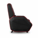 این مبل گیمینگ بهشکلی طراحی شده که بتوانید از آن در تمامی محیطها، از جمله محیطهای کار، اتاق گیمینگ یا حتی اتاق پذیرایی استفاده کنید. رنگ مشکی این مبلۀ ستکردن آن با هر دکوری را آسان میکند و استفاده از نوارهای قرمزرنگ به مبل حالتی امروزی و جوانپسند داده است.