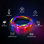با این نوار نورپردازی هوشمند میتوانید از مزیت نورپردازی مخفی برای محیطهای مختلف، از جمله فضاهایی مثل اتاق گیمینگ، اتاق خواب، آشپرخانه، اتاق کودکان و حتی فضاهای تجاری مثل کافیشاپها و باشگاههای ورزشی بهرهمند شوید و درعینحال این امکان را داشته باشید که هر لحظه و بسیار آسان رنگ یا رنگهای نورپردازی را تغییر دهید، نورپردازی را به شکل متحرک درآورید و از دیگر مزیتهای کاربردی آن استفاده کنید. در ادامه نگاهی دقیقتر به ویژگیهای این محصول خواهیم داشت.