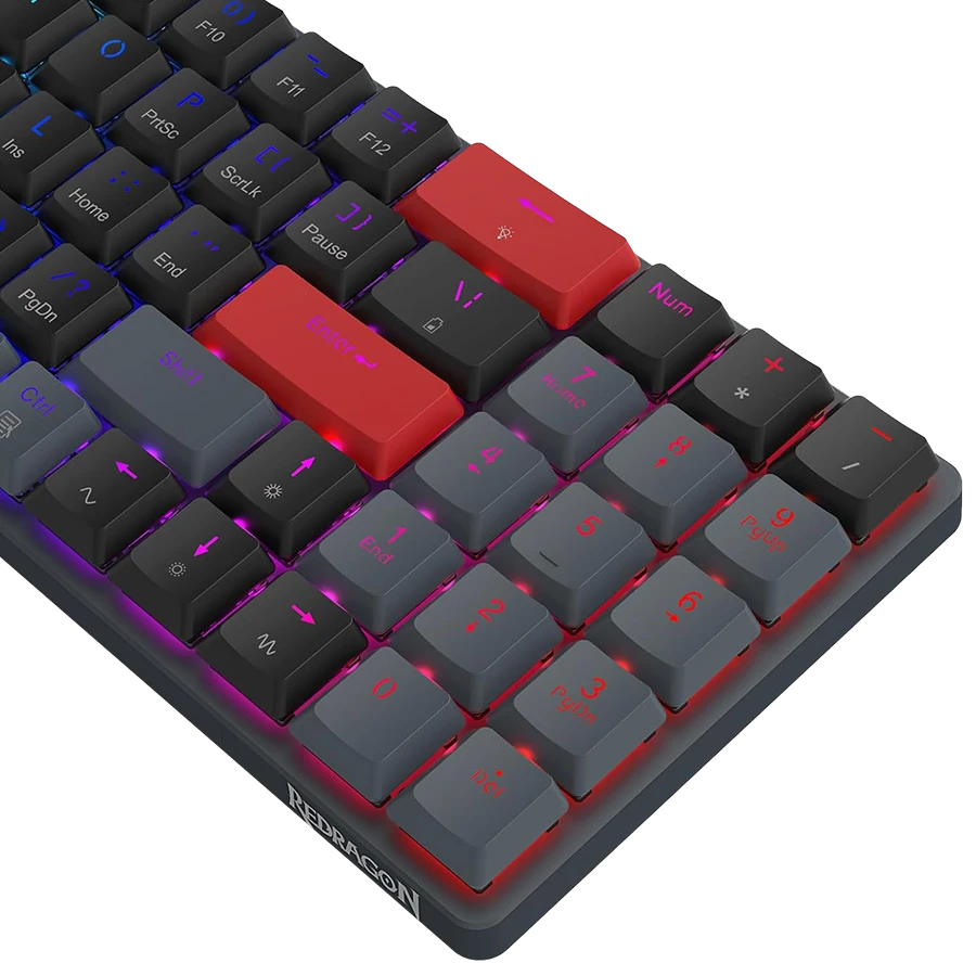با نورپردازی RGB چشمگیر، هر کلید از کیبورد می‌تواند به یک قطعه‌ی هنری تبدیل شود. این نورپردازی نه تنها جلوه‌ای شیک و مدرن به کیبورد می‌دهد، بلکه با امکان شخصی‌سازی کامل از طریق نرم‌افزار Redragon، شما می‌توانید رنگ، الگو و سرعت نور را بر اساس سبک خود تنظیم کنید. از افکت‌های پویا تا نورهای ثابت، هر دستور کلید می‌تواند با نور خاصی همراه شود. این ویژگی، هم برای گیمرها و هم برای کاربران حرفه‌ای، تجربه‌ای بصری منحصربه‌فرد ایجاد می‌کند.