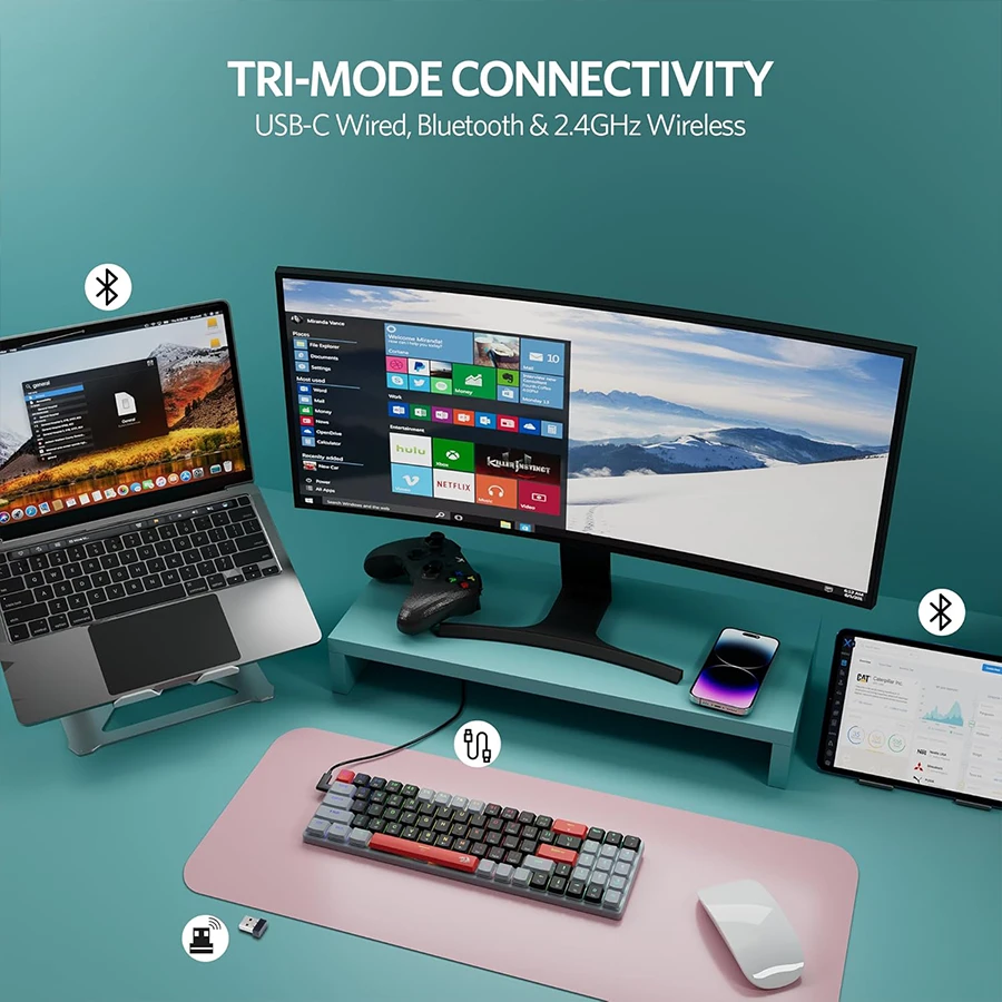 اتصال سه‌حالتی: سیمی، بی‌سیم 2.4G و بلوتوث 5.0