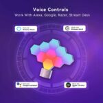 یکی از ویژگیهای قابلتوجه این محصول سازگاری آن با دستیار صوتی الکسا، دستیار گوگل، دک استریم و Razer synapse 3 است. این یعنی درصورت استفاده از الکسا و دستیار صوتی گوگل میتوانید با فرمانهای صوتی هم لامپها را کنترل، مثلاً آنها را خاموش یا روش کنید. همچنین اگر از دک استریم استفاده میکنید میتوانید میانبری برای این کیت در آن دستگاه تعریف کنید تا حین استریم در زمانی کوتاه و بدون نیاز به توجه نورپردازی لامپها را کنترل و به تنظیماتاش دسترسی داشته باشید.