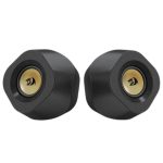 اسپیکر GS590 با ابعاد 107×74×116 میلیمتر طراحی شده است؛ ابعادی که نهتنها فضای کمی را اشغال میکند، بلکه بهراحتی در کنار مانیتور یا لپتاپ قرار میگیرد. بدنه از جنس پلاستیک باکیفیت ساخته شده که ضمن حفظ وزن سبک، مقاومت مناسبی در برابر ضربه و خطوخش دارد. این طراحی ساده و درعینحال شیک، بهخوبی با انواع دکوراسیون اداری یا گیمینگ هماهنگ میشود.