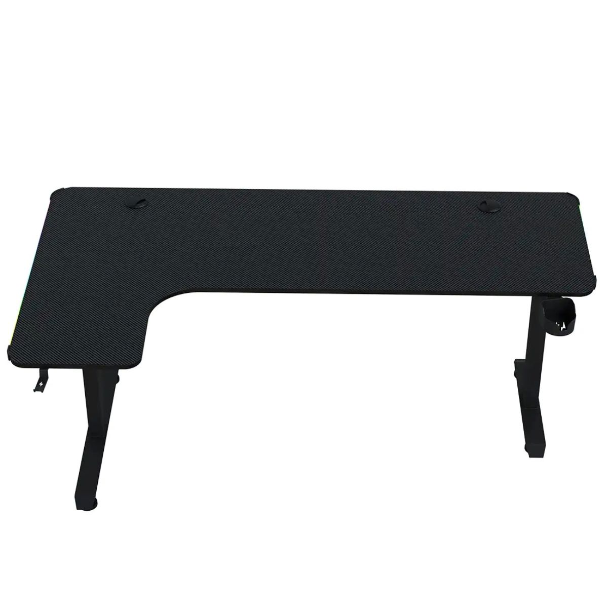 بدنهی اصلی میز از فلز باکیفیت ساخته شده که استحکام و پایداری فوقالعادهای را تضمین میکند. سطح رویی با روکش فیبر کربن پوشیده شده که علاوهبر زیبایی ظاهری، در برابر خطوخش و ساییدگی مقاوم است. بافت خاص این روکش، جلوهای مدرن به محیط میبخشد و تجربهی استفاده از ماوس و کیبورد را نیز بهبود میبخشد.