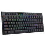 در وبسایت ردراگون هم تأکید شده که سوییچهای آبی این کیبورد برای تایپ از بهترین گزینهها هستند. اما فارغ از سوییچها، این کیبورد فولسایز از طریق کابل به PC متصل میشود و تأخیر در انتقال دادهها در آن جایی ندارد. همچنین دارای 94 کلید است و خوشبختانه میان این کلیدها، کلیدهایی برای تسلط بر پخش چندرسانهای دیده میشوند. در کنار این کلیدهای چندرسانهای هم کلیدی غلتکی برای تنظیم ولوم طراحی شده، کلیدی که ظاهری زیبا دارد و کار با آن جذاب است.