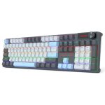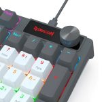 با رنگبندی منحصربهفرد (ترکیبی از طوسی، سفید و آبی)، ظاهر این کیبورد درست همانقدر که متفاوت است، چشمنواز و خاص هم هست. در کنار این طراحی، نورپردازی تمامعیار RGB و سوییچهای مکانیکی قرمز رنگ، هم زیبایی و هم عملکرد را بهطور همزمان تضمین میکنند. افزودهشدن یک کلید چرخشی چندکاره در گوشهی بالا سمت راست دستگاه، کنترل سریع صدا یا نورپردازی را بدون نیاز به کلیدهای ترکیبی فراهم میکند – چیزی که در میان کاربران حرفهای بهشدت محبوب است.