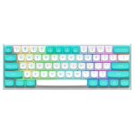 با وزنی حدود 860 گرم و طراحی ارگونومیک، این کیبورد در عین سبک بودن، استحکام بالایی دارد. بدنهی مستحکم آن از استیل ضد زنگ و مواد باکیفیت ساخته شده و برای استفادهی طولانیمدت کاملاً مناسب است. همچنین، طراحی رنگ سفید-آبی فیروزهای حس خاص بودن و تفاوت را به میز کار یا میز بازی شما میبخشد.