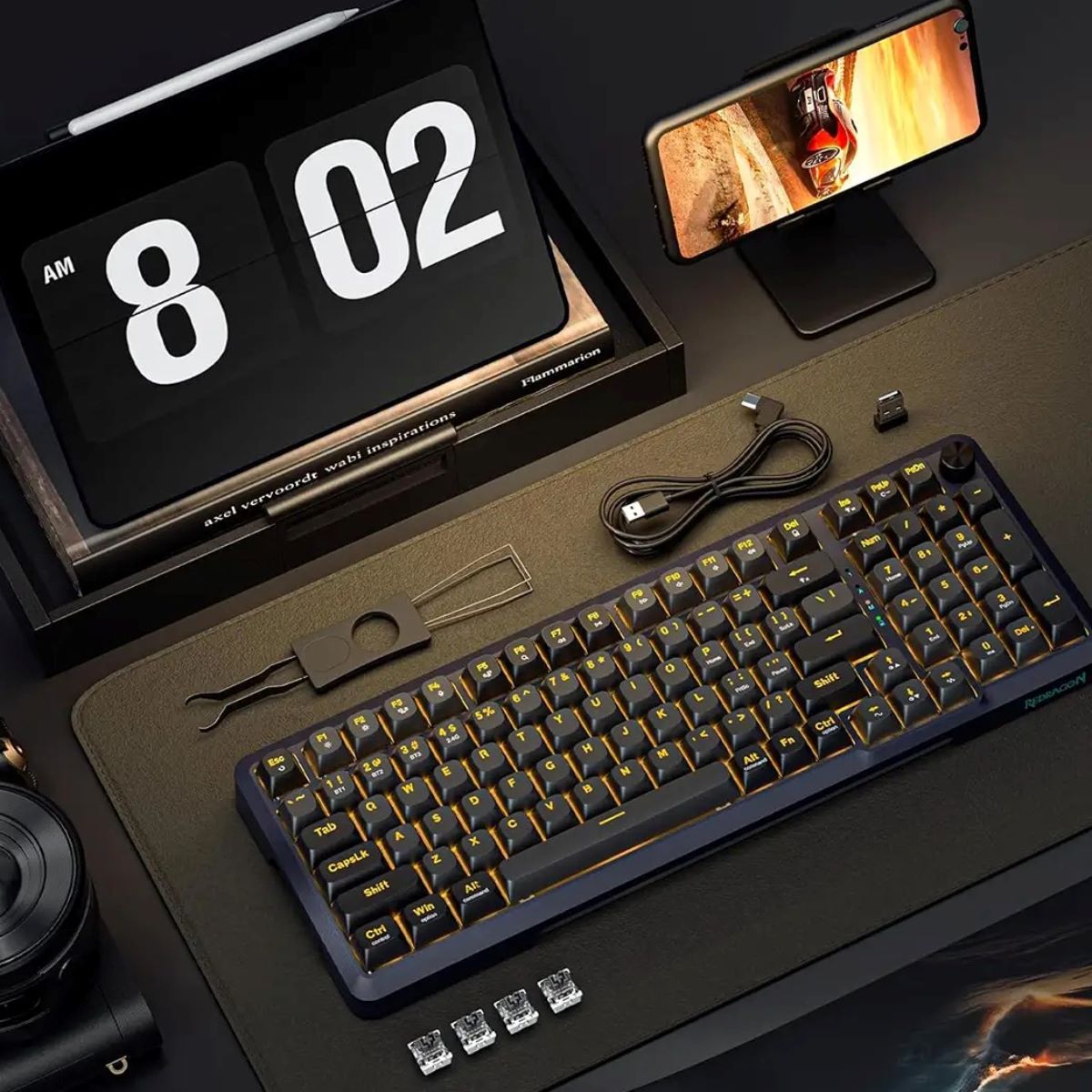 کیبورد مکانیکی گیمینگ ردراگون BRAGI K688 GB PRO را میتوان ترکیبی تحسینبرانگیز از فناوری پیشرفته، طراحی حرفهای و انعطافپذیری شگفتانگیز دانست که برای گیمرها و کاربران حرفهای ساخته شده است. این کیبورد با بهرهگیری از سوییچهای مکانیکی ازپیشروغنکاریشده، تجربهی تایپ و بازی نرمی را فراهم میکند و صدای تایپ ملایم و لمس دلنشین هر کلید، حس کار با یک ابزار ردهبالا را در کاربر برمیانگیزد. نکتهی جالب اینجاست که این سوییچها قابل تعویض اند و میتوان بدون نیاز به لحیمکاری، بهسادگی آنها را با مدلهای دلخواه جایگزین کرد تا کاربر بتواند کیبورد خود را مطابق سلیقه و نیازش شخصیسازی کند.