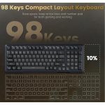 در طراحی این محصول، 98 کلید با چیدمانی فشرده و کاربردی انتخاب شده که ضمن حفظ امکانات کامل از جمله کلیدهای F1 تا F12، بخش نامپد و کلیدهای جهت، فضای کمتری روی میز اشغال میکند و ظاهر منظمتری ارائه میدهد. کلیدها با پروفایل MDA طراحی شدهاند که هم از نظر زیباییشناسی و هم حس لمس، کیفیتی متفاوت نسبت به پروفایلهای مرسوم دارند و کار با آنها تجربهای ممتاز فراهم میکند.