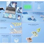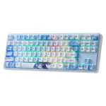 در نگاه اول، طراحی سفید-آبی این کیبورد توجه را جلب میکند؛ اما چیزی که آن را از رقبا متمایز میسازد، استفاده از جنس کلید PBT است. کلیدهای PBT دوام بسیار بالاتری نسبت به پلاستیکهای رایج ABS دارند، در برابر سایش مقاومتر اند و حتی پس از ماهها استفاده، ظاهر و حس اولیهشان را حفظ میکنند.