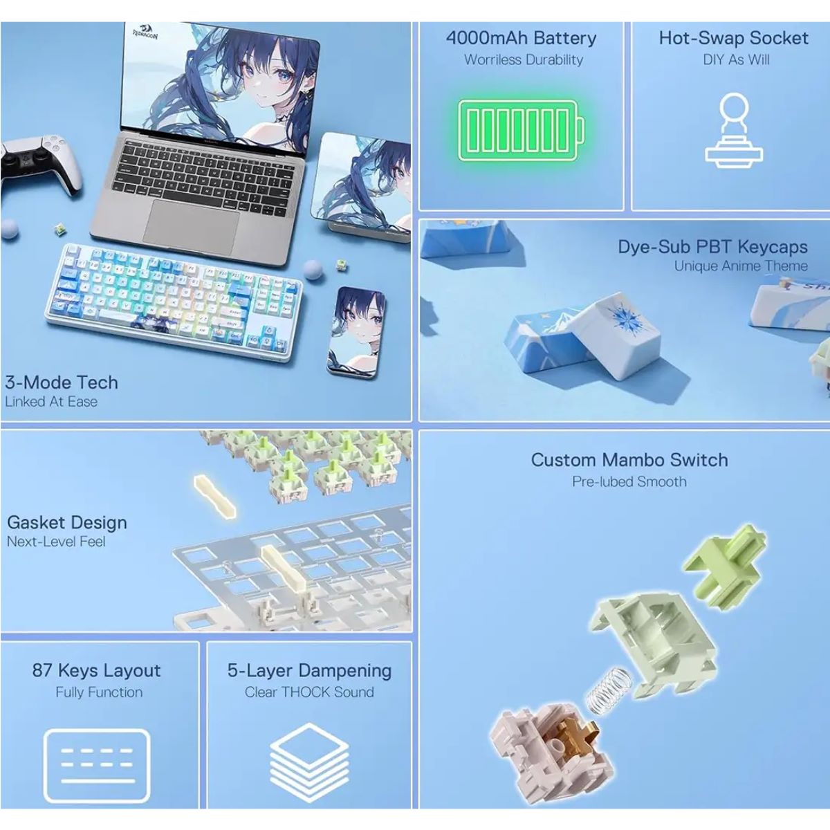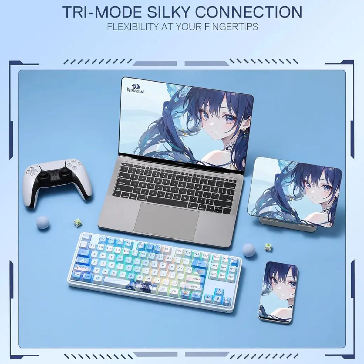 در دنیایی که گاه ظاهر و عملکرد هر دو به یک اندازه اهمیت دارند، کیبورد Redragon K707 AK PRO با طراحی انیمهای و امکانات حرفهای، تعادلی هوشمندانه میان زیبایی و قدرت خلق کرده است. ترکیب رنگی چشمنواز سفید و آبی با طراحی گرافیکی منحصربهفرد، این مدل را به یک انتخاب ممتاز برای کاربران خوشسلیقه تبدیل کرده که در عین حال به قابلیتهای گیمینگ نیز اهمیت میدهند. ضمن آن که برای خرید اینترنتی این کیبورد گیمینگ ردراگون میتوانید در این صفحه از فروشگاه دراگونشاپ روی «افزودن به سبد خرید» کلیک کنید، ویژگیهای این کیبورد بیسیم را در ادامه بررسی خواهیم کرد.