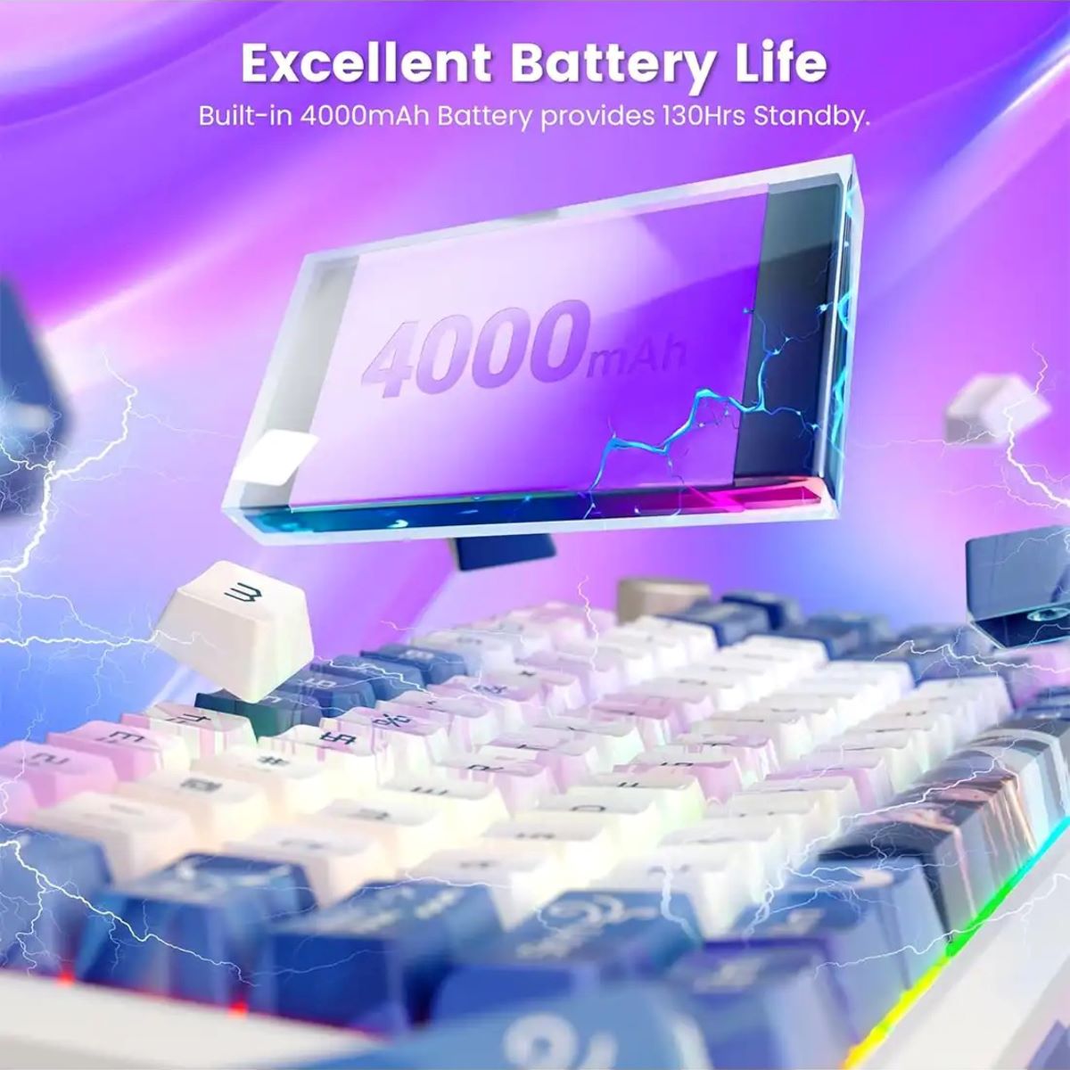 در قلب این کیبورد، یک باتری 4000 میلیآمپر ساعت قرار دارد که تا 130 ساعت استفادهی مداوم را پشتیبانی میکند. این یعنی حتی با استفادهی سنگین روزانه، فقط چند بار در ماه نیاز به شارژ مجدد خواهید داشت. برای گیمرهایی که در مسابقات طولانی شرکت میکنند یا کسانی که از شلوغی کابلها گریزانند، این ویژگی یک نعمت است.