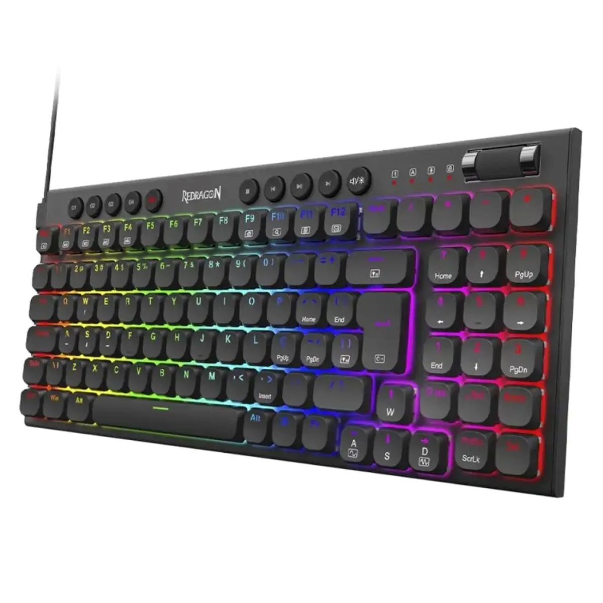 کیبورد Redragon SION K653 با طراحی 94 کلیدی، ترکیبی هوشمند از فرم فشرده و عملکرد کامل ارائه میدهد. با وجود ابعاد کوچکتر نسبت به کیبوردهای فولسایز، این مدل همچنان دارای بخش نامپد، کلیدهای مدیا، چهار کلید ماکروی اختصاصی و یک کلید غلتکی چندکاره برای کنترل صدا است که بهطور حرفهای در گوشهی بالا سمت راست تعبیه شده است. اجازه دهید با هم در ادامه مروری بر ویژگیهای این کیبورد گیمینگ ردراگون داشته باشیم.